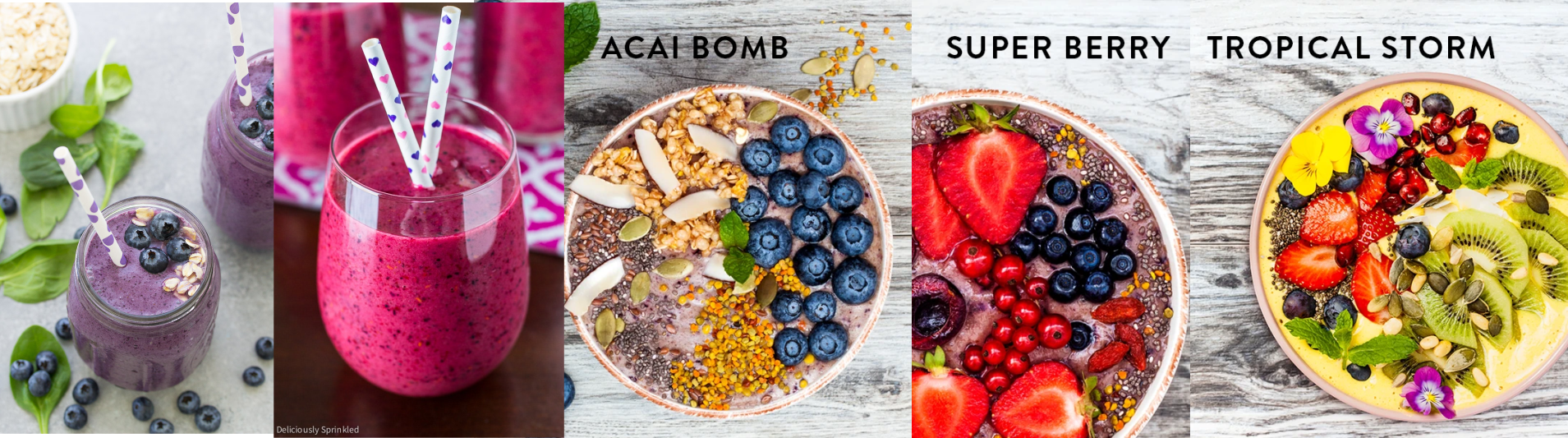 Frozen smoothie packs in convenient 120g pouches: Srawberry, Blueberry, Black Currant, Blackberry, Açai, Banana, Hemp Protein, Baobab