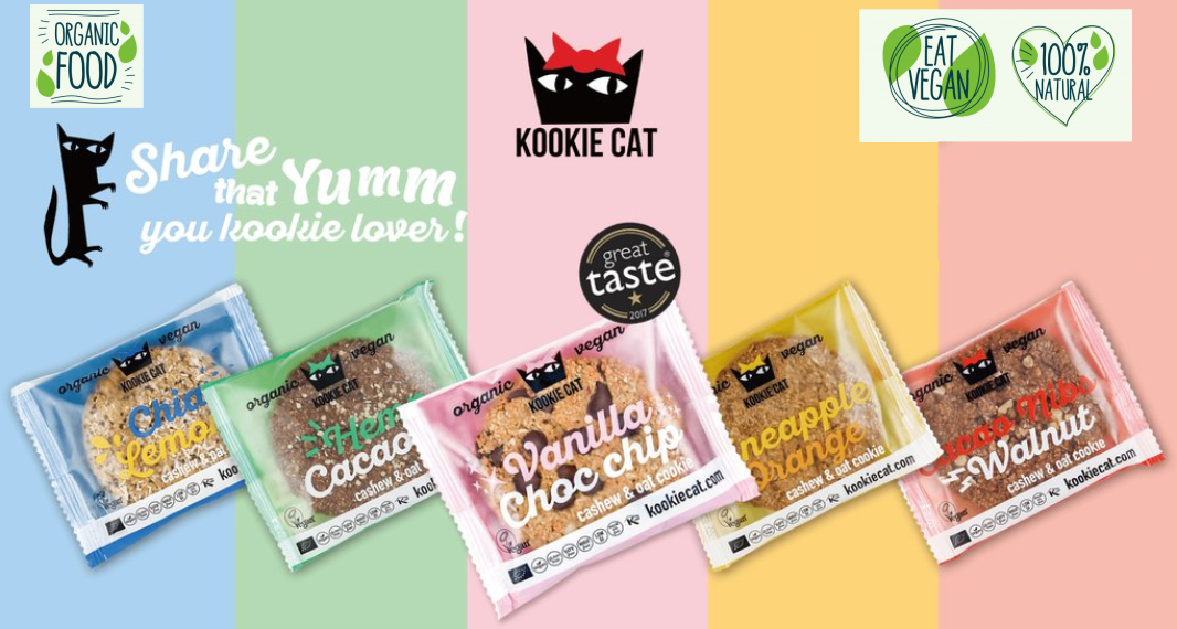 721-0488 Kookie Cat Organik, Yulaf gevreği, Kaju, Çikolata parçacıkları ve Cevizli Kurabiye 50g